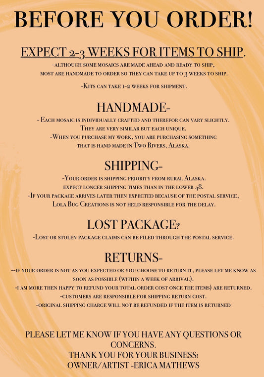DIY Mosaic Kits 4.5"-10". Variety of styles including frames.
