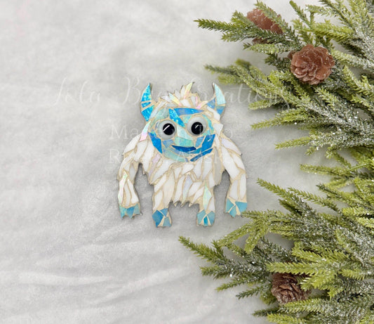 Yeti / Abominable Snowman glass mosaic ornament / Magnet.