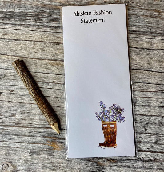 Adorable “Alaska Fashion Statement” Xtra Tuf with flowers Notepad