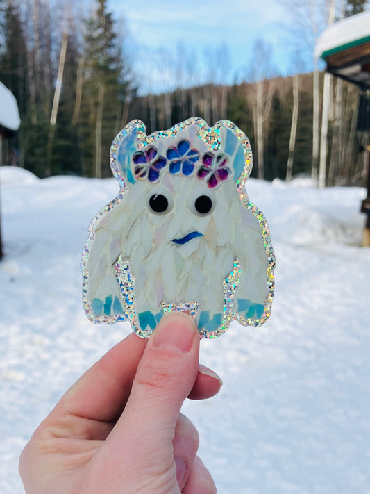 Yeti With Flower Crown glitter Sticker