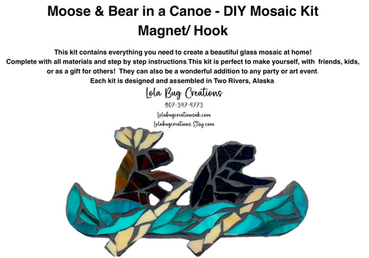 Moose and Bear Canoe - Magnet/ Hanging Glass Mosaic Kit - DIY- Make it yourself