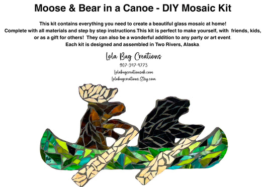 Moose Bear Canoe- Glass Mosaic Kit - DIY-Do it yourself- Make it yourself