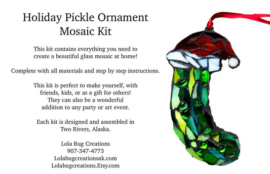Holiday Christmas Santa Pickle Ornament Hanging Glass Mosaic Kit / DIY Do it yourself- Make it yourself / leucistic raven / crow