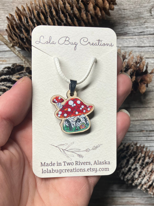 Mushroom House Wood Necklace