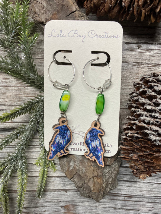 Northern Lights Raven Wood Earrings