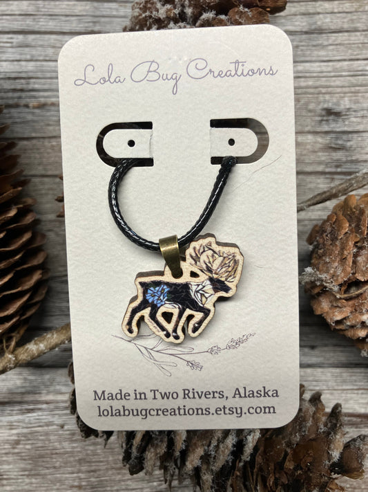 Forget-Me-Not Caribou Wood Necklace