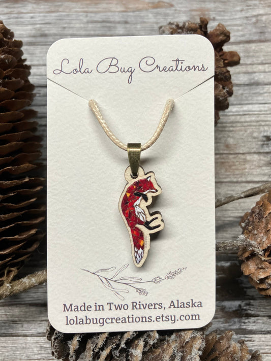 Jumping Fox Wood Necklace