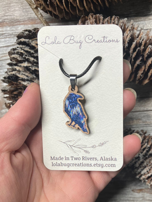 Northern Lights Raven Wood Necklace