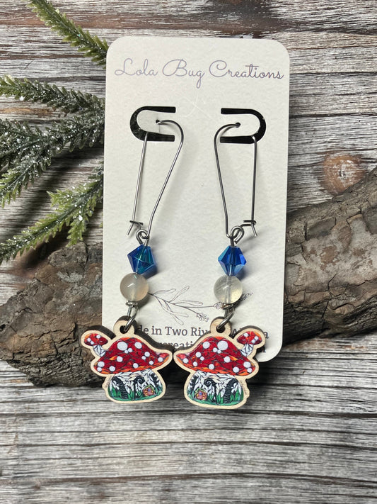 Sold outMushroom House Wood Earrings