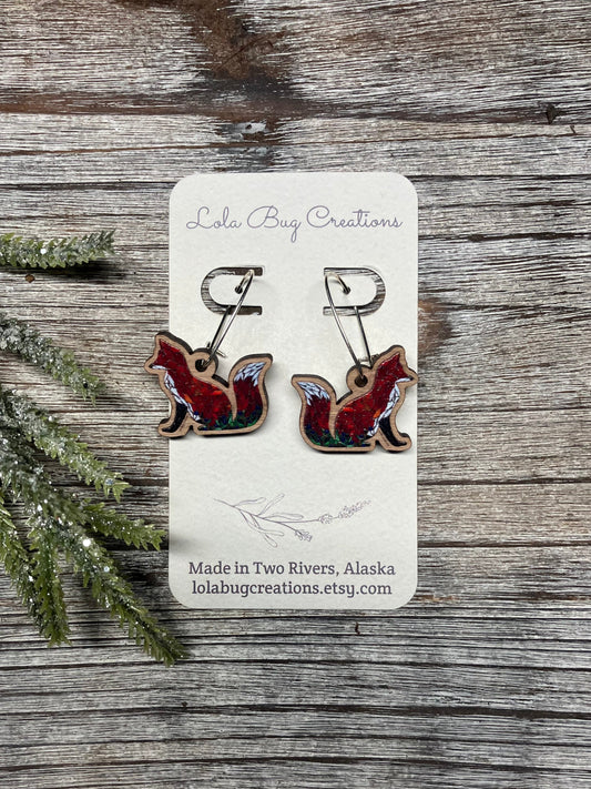 Wood Jumping Fox Earrings