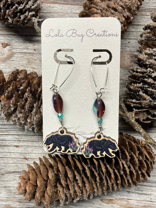 Fireweed Black Bear Wood Earrings