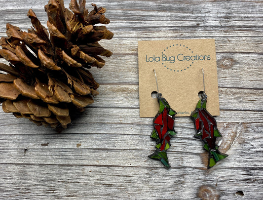 Glass Mosaic and resin Salmon Earrings