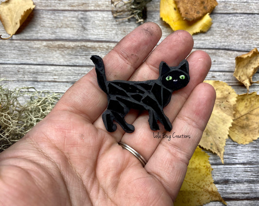 Mini Black Cat Halloween -Glass Mosaic Magnet