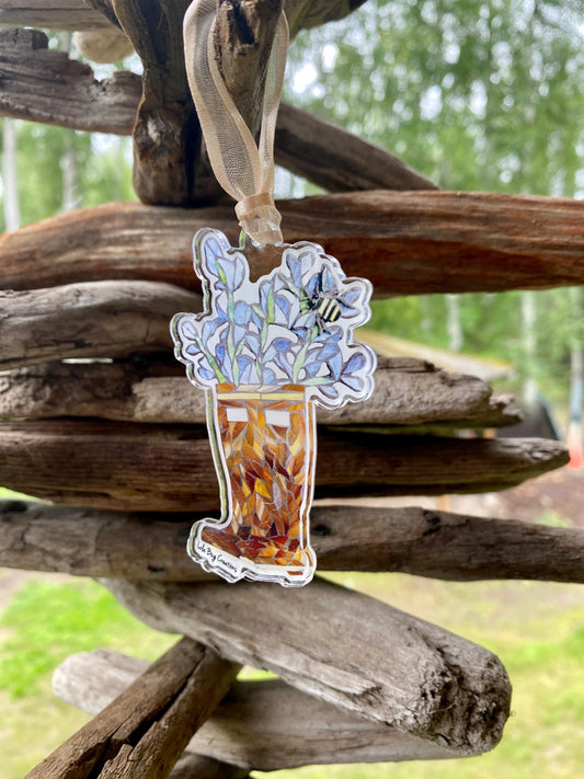 Xtra Tuf boots with flowers and bee acrylic ornament