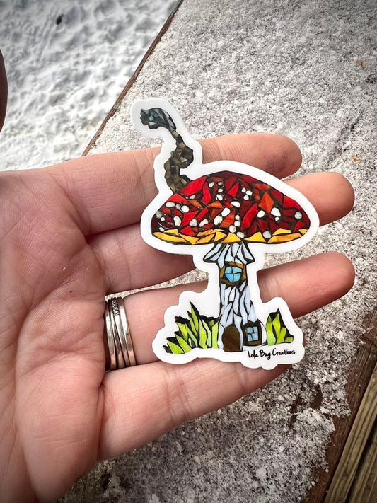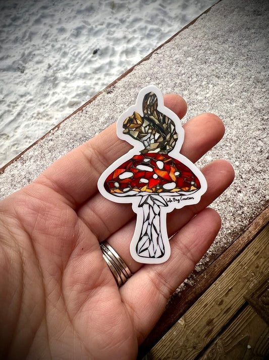 Amanita Mushroom With a Sitting Squirrel Vinyl Sticker
