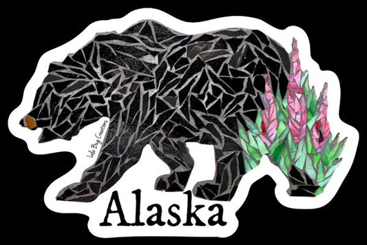 Bear and Moose in a Canoe Alaska Vinyl Sticker