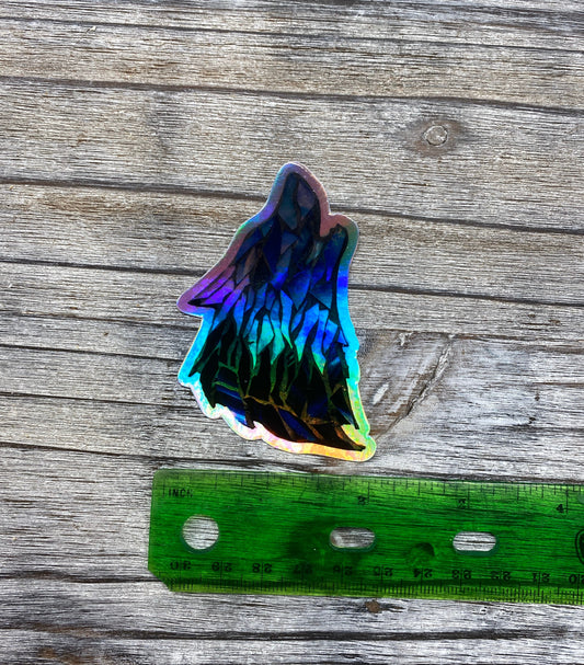 Holographic Multicolor Wolf Howling Vinyl Sticker