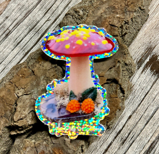 Glitter Amanita Mushroom Sunset Vinyl Sticker