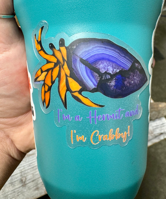 Hermit Crab “I’m and hermit and I’m Crabby” Clear Vinyl Sticker