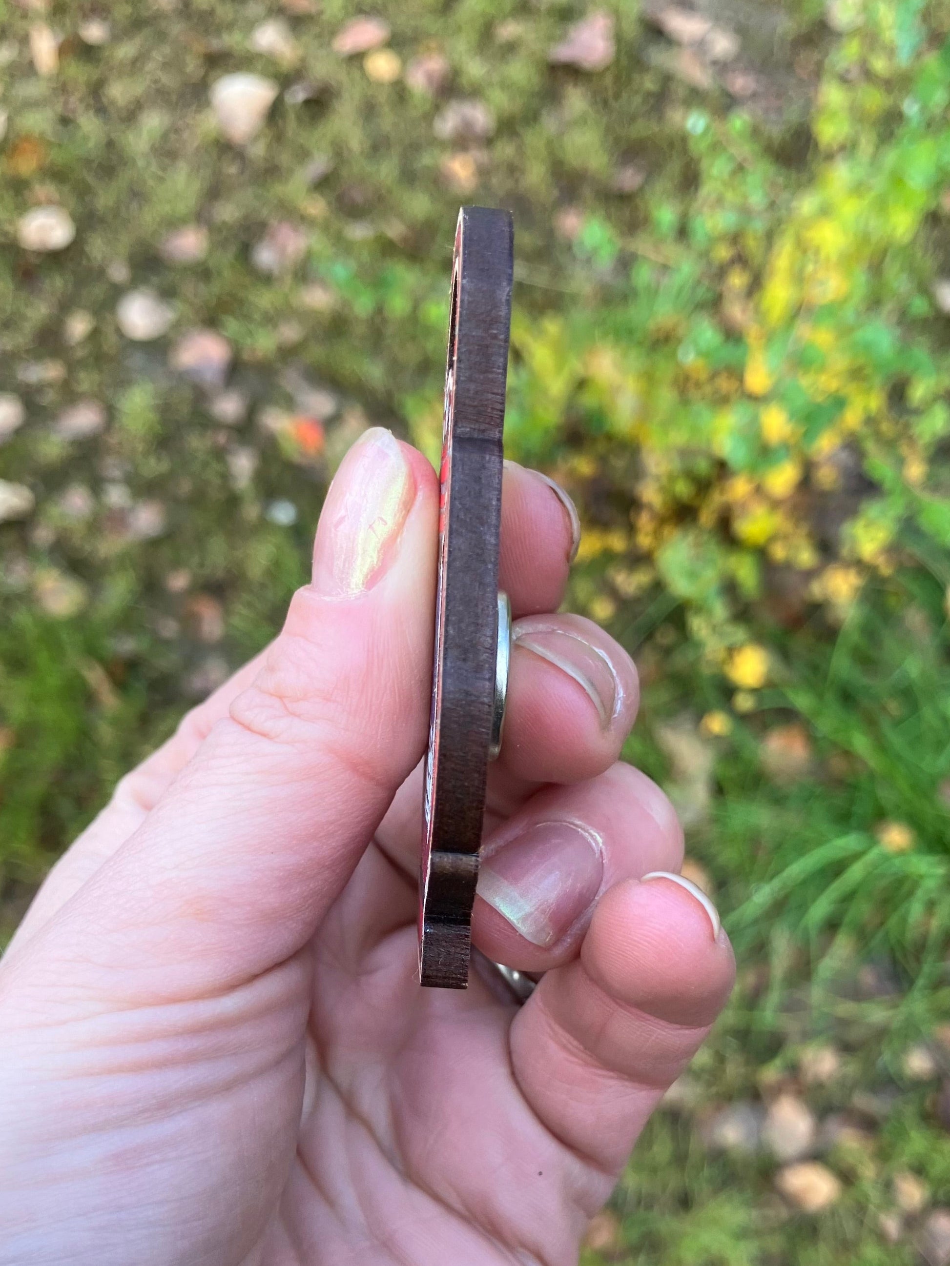 Adorable wood ornament. UV printed on wooden shape with colorful image of previously original made mosaic. Measures 2" long/ wide from largest points.