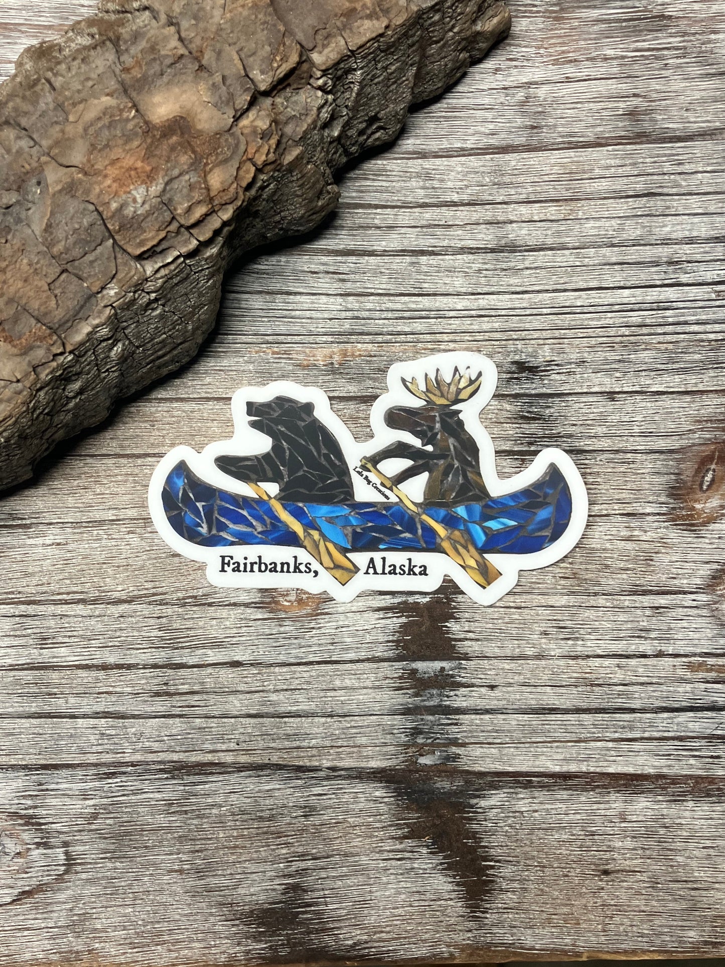 Bear and Moose in a Canoe Fairbanks, Alaska Vinyl Sticker
