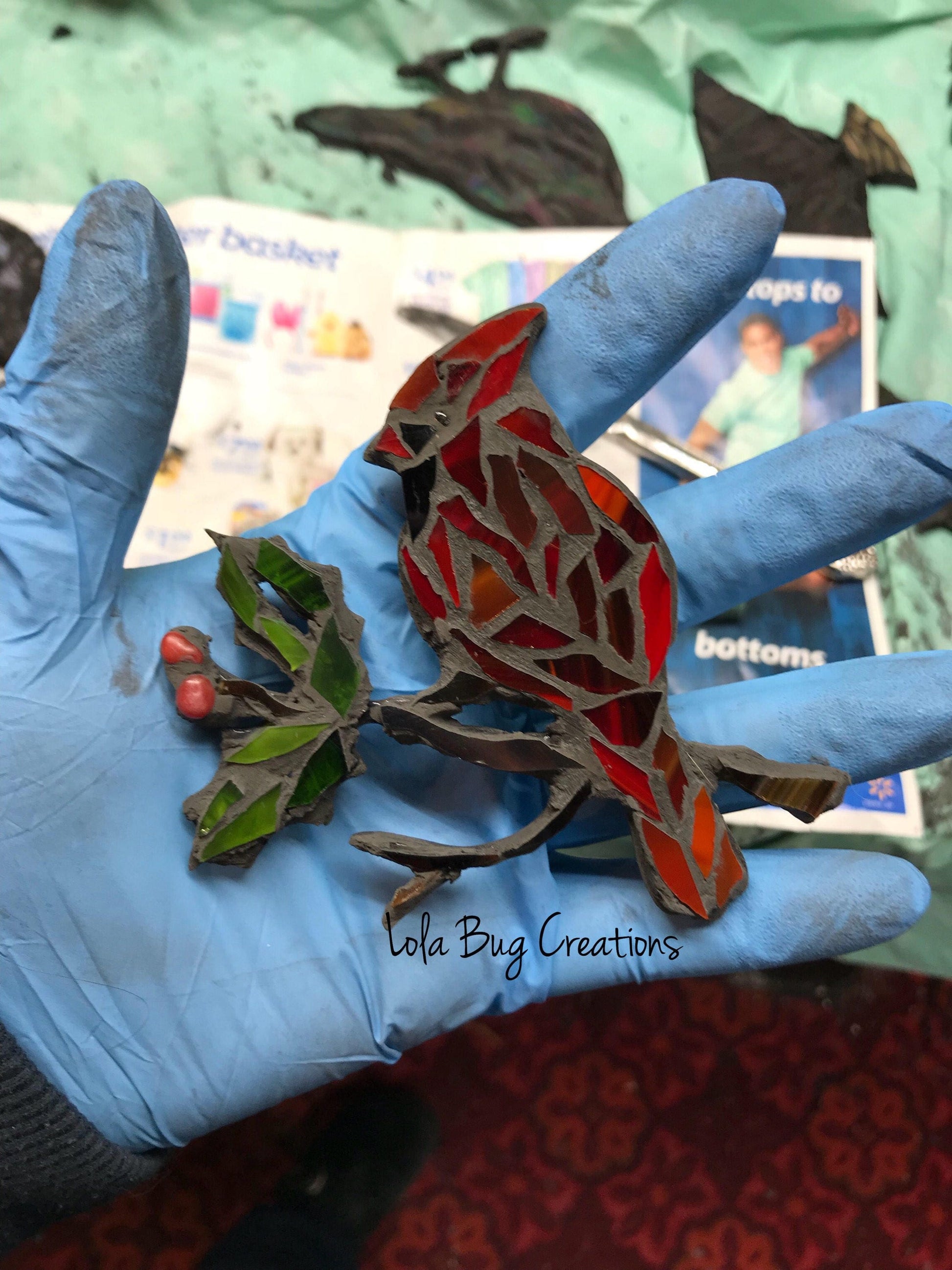 All of my Mosaics are hand made by myself in my home studio in Two Rivers, Alaska. Each mosaic is made with beautiful pieces of stained glass. I hand cut/ chop each piece then place them all by hand on a thin wood backing. They are then set with a dark chocolate or Charcoaled colored grout. Each piece has a hanger placed on the back so they can be used as a piece of wall art. 4” magnets also have a hook on the back to hang on the wall or attach ribbon for an ornament!