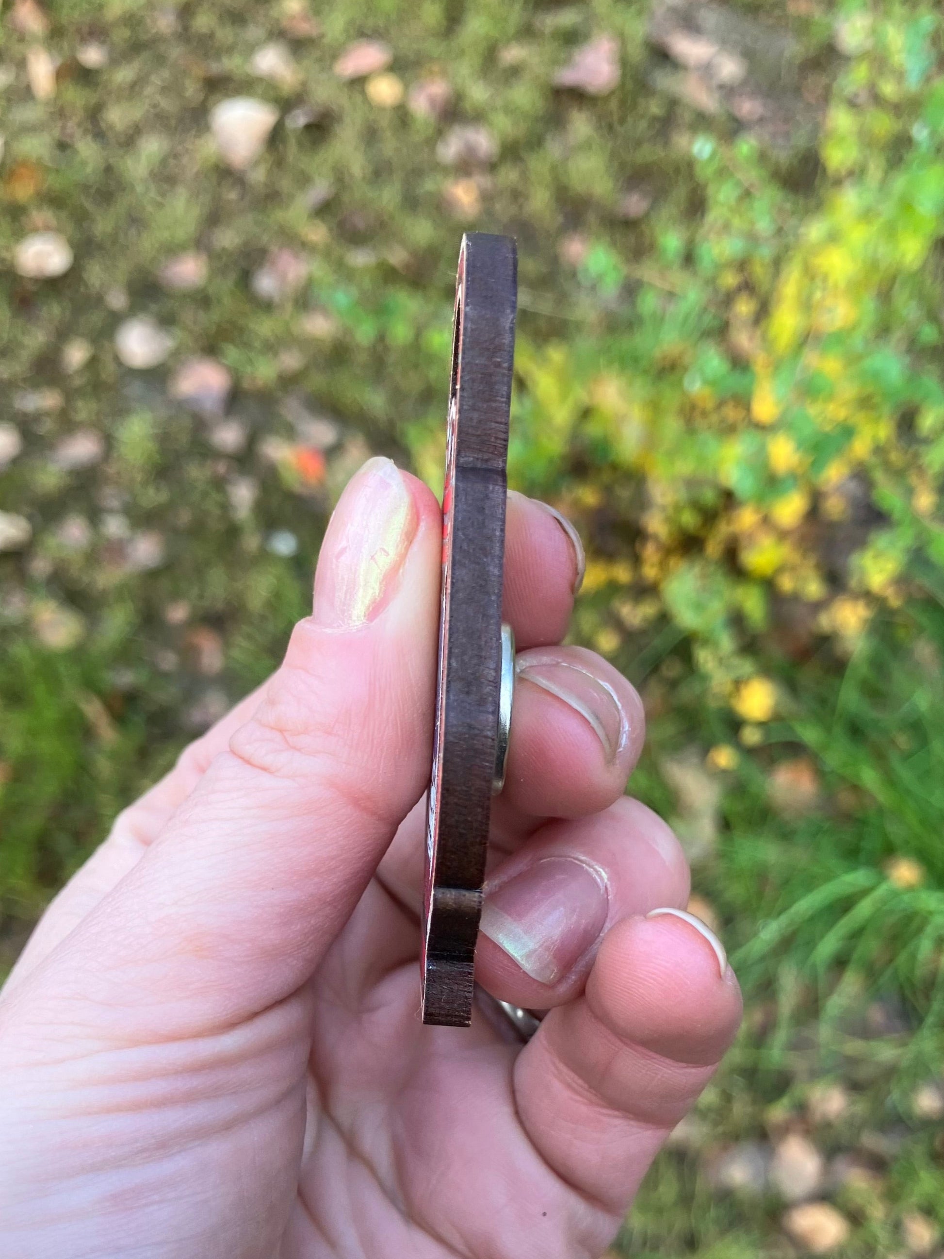 Adorable wood magnet. UV printed on wooden shape with colorful image of previously original made mosaic.