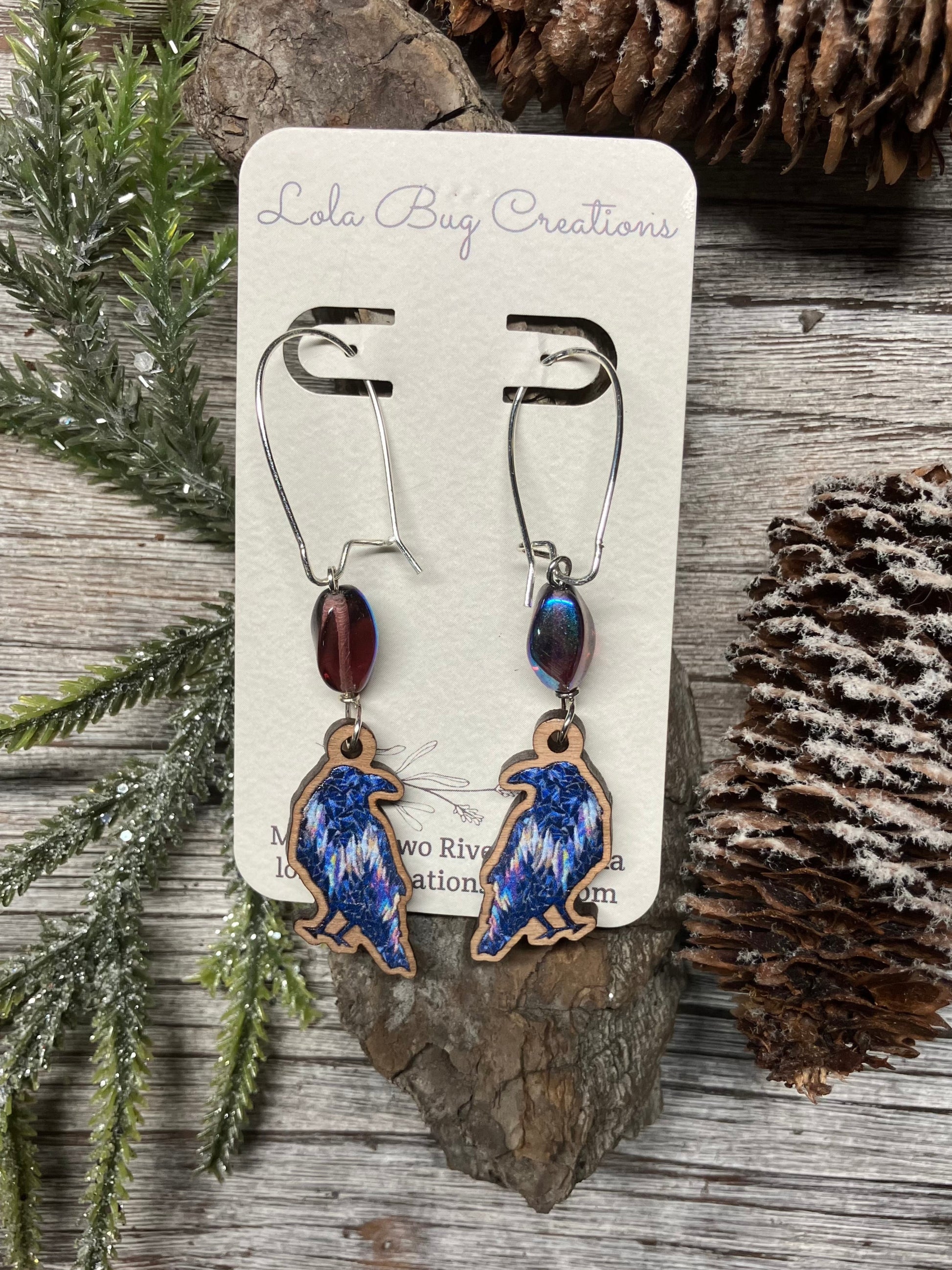 Beautiful earrings with an image of a previously made mosaic printed on wood. Each set of earrings have a beautiful bead. Multiple bead colors, shape and style available. Sterling Silver plated ear wires.