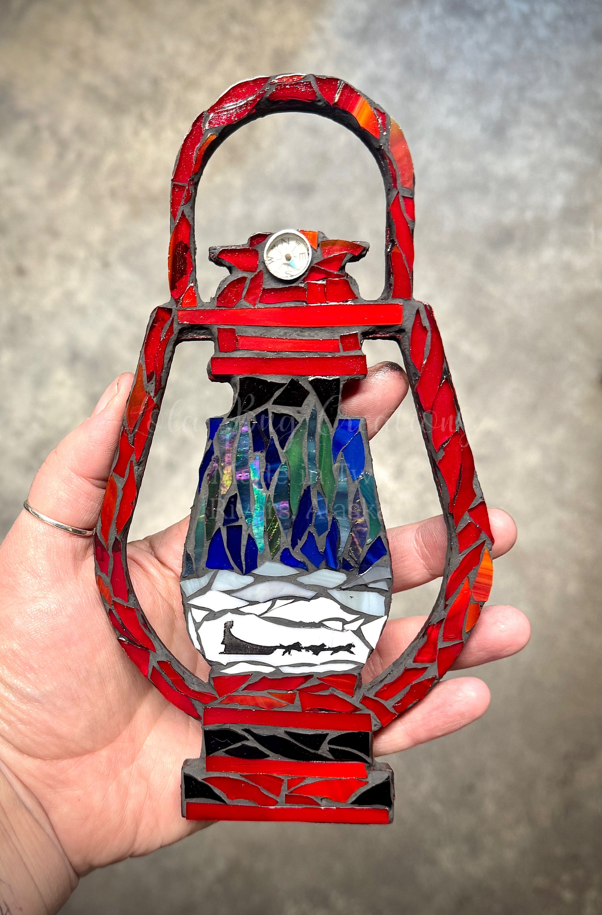 All of my Mosaics are hand made by myself in my home studio in Two Rivers, Alaska. Each mosaic is made with beautiful pieces of stained glass. I hand cut/ chop each piece then place them all by hand on a thin wood backing. They are then set with a dark chocolate or Charcoaled colored grout. Each piece has a hanger placed on the back so they can be used as a piece of wall art. 4” magnets also have a hook on the back to hang on the wall or attach ribbon for an ornament!